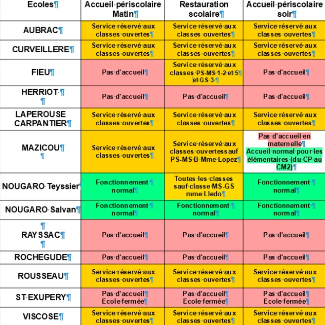 Un service minimum d'accueil est organisé à l'école de la Curveillère (impasse Finlande) pour les familles ne disposant pas de mode de garde et pour les écoles ayant au moins 25 % d'enseignants grévistes (Aubrac, Curveillère, Herriot, Lapérouse-Carpantier, Mazicou, Rochegude, Rousseau, Saint-Exupéry et Viscose).