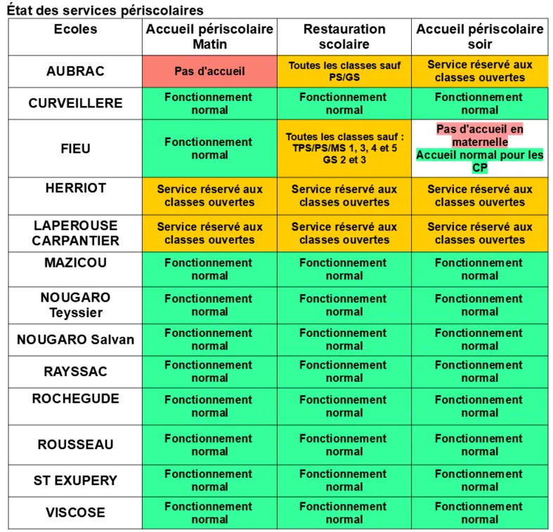 Un service minimum d'accueil est organisé à l'école Aubrac (25 ter rue de la Madeleine) pour les familles ne disposant pas de mode de garde et pour les écoles ayant au moins 25 % d'enseignants grévistes (Aubrac, Herriot et Lapérouse Carpantier).
