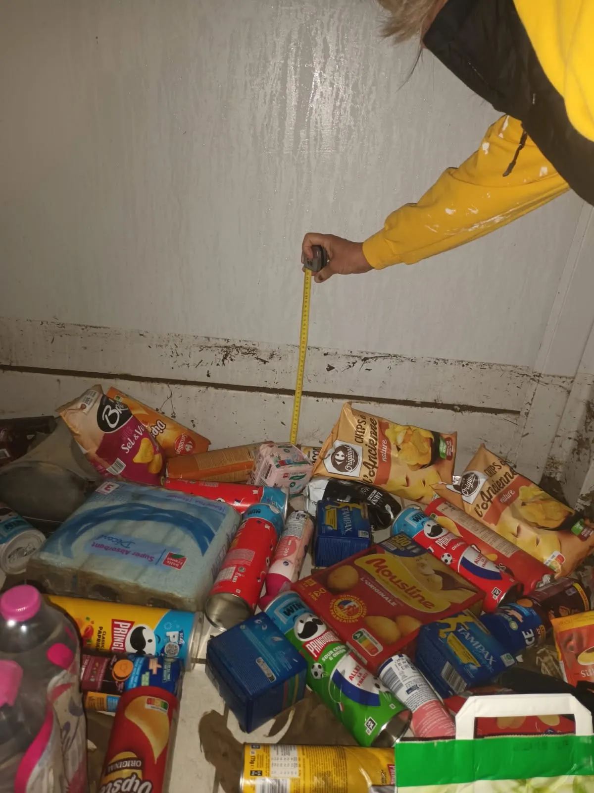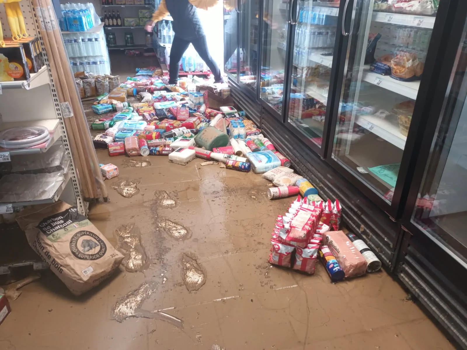 "Les gens sont solidaires. On a passé un message sur les réseaux sociaux et on a un groupe qui s'est relayé depuis trois jours. Ils nous ont aidé à tout nettoyer. ça fait chaud au coeur. On a dû évacuer un centimètre de boue sur 400 m2 de magasin avant que ça ne sèche. Difficile de faire une évaluation. On a perdu une vitrine qui coûte 50 000€. Les moteurs des frigos aussi ont été trempés. Il y a l'informatique qui est fichu. Et puis il y a tous les produits alimentaires qui ont trempé dans l'eau. Les experts passent lundi prochain. Aujourd'hui, on a même retrouvé des bouteilles de gaz dans le ruisseau. Elles avaient été embarquées par la vague, c'est dire la force..."