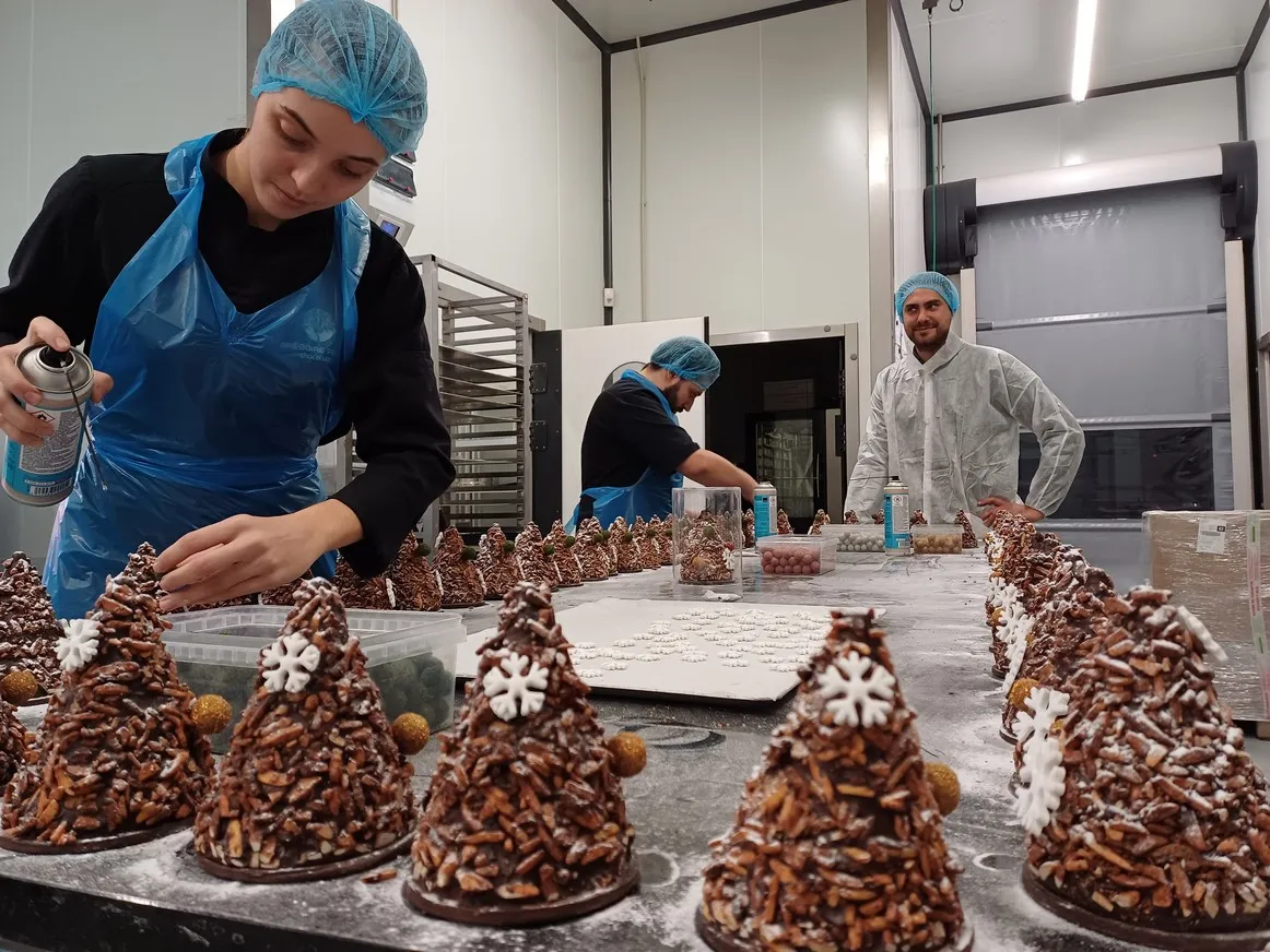 "On commence à produire nos chocolats de Noël sur la saison d'été. Le sprint a lieu durant septembre et octobre où on livre tous nos professionnels. Nous travaillons avec 500 revendeurs dans tout le Sud-Ouest. Novembre et décembre sont consacrés aux chocolats destinés à nos deux boutiques à Montauban. Les coffrets et les ballotins ont toujours la cote mais notre best-seller c'est le nounours en guimauve enrobé de chocolat. On en produit entre 20 et 30 000 par an. Pâques est une période importante mais Noël représente encore 60% de notre chiffre d'affaire."