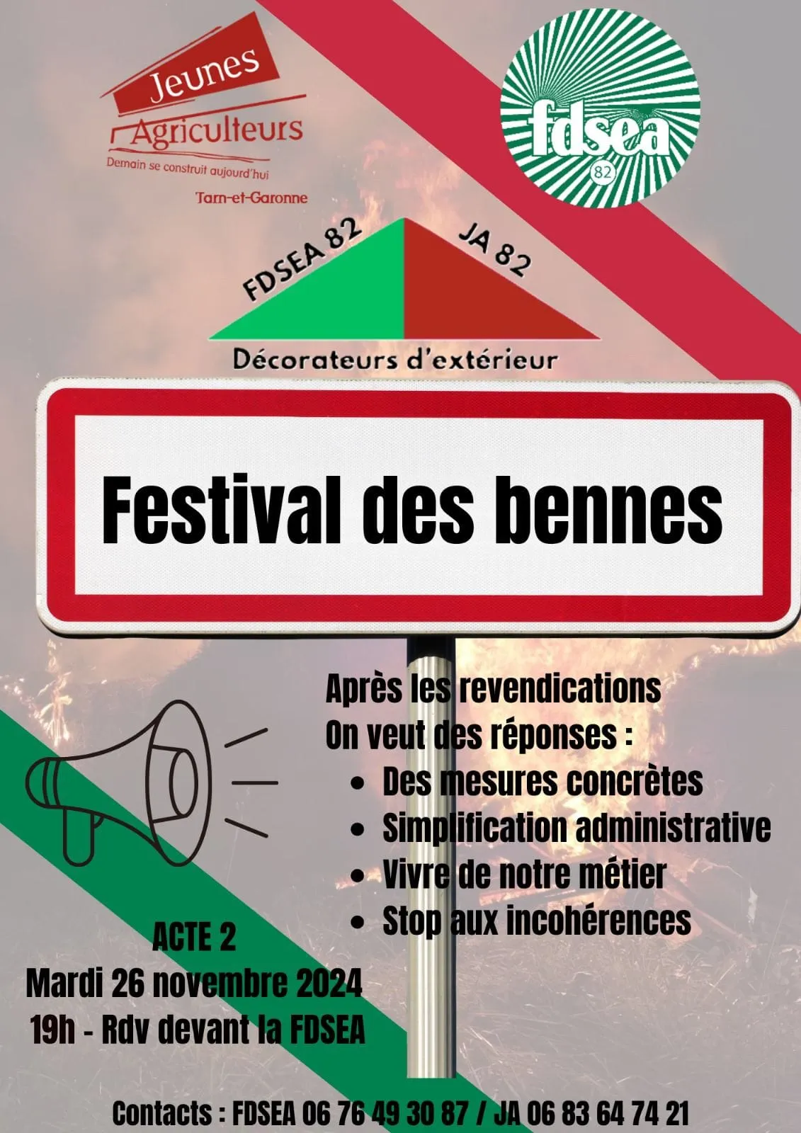 Attendez vous à des perturbations ce mardi soir sur les routes dans le Tarn-et-Garonne. Pour cette deuxième nuit d’action, la FDSEA et les Jeunes Agriculteurs ont convoqué les exploitants de tout le département pour une opération baptisée le « Festival des Bennes ». On attend une centaine de tracteurs...