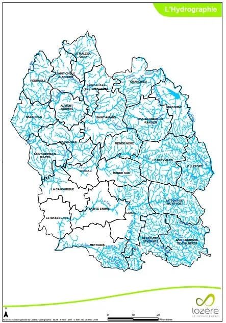 Pour l'alimentation en eau potable, les communes vont puiser dans les cours d'eau, qui sont au nombre de 437 dans le département. On trouve principalement le Tarn, le Lot, la Truyère, le Chassezac, les Gardons et l’Allier. Pour Mende, l'approvisionnement en eau est réalisée par le lac de Charpal.
