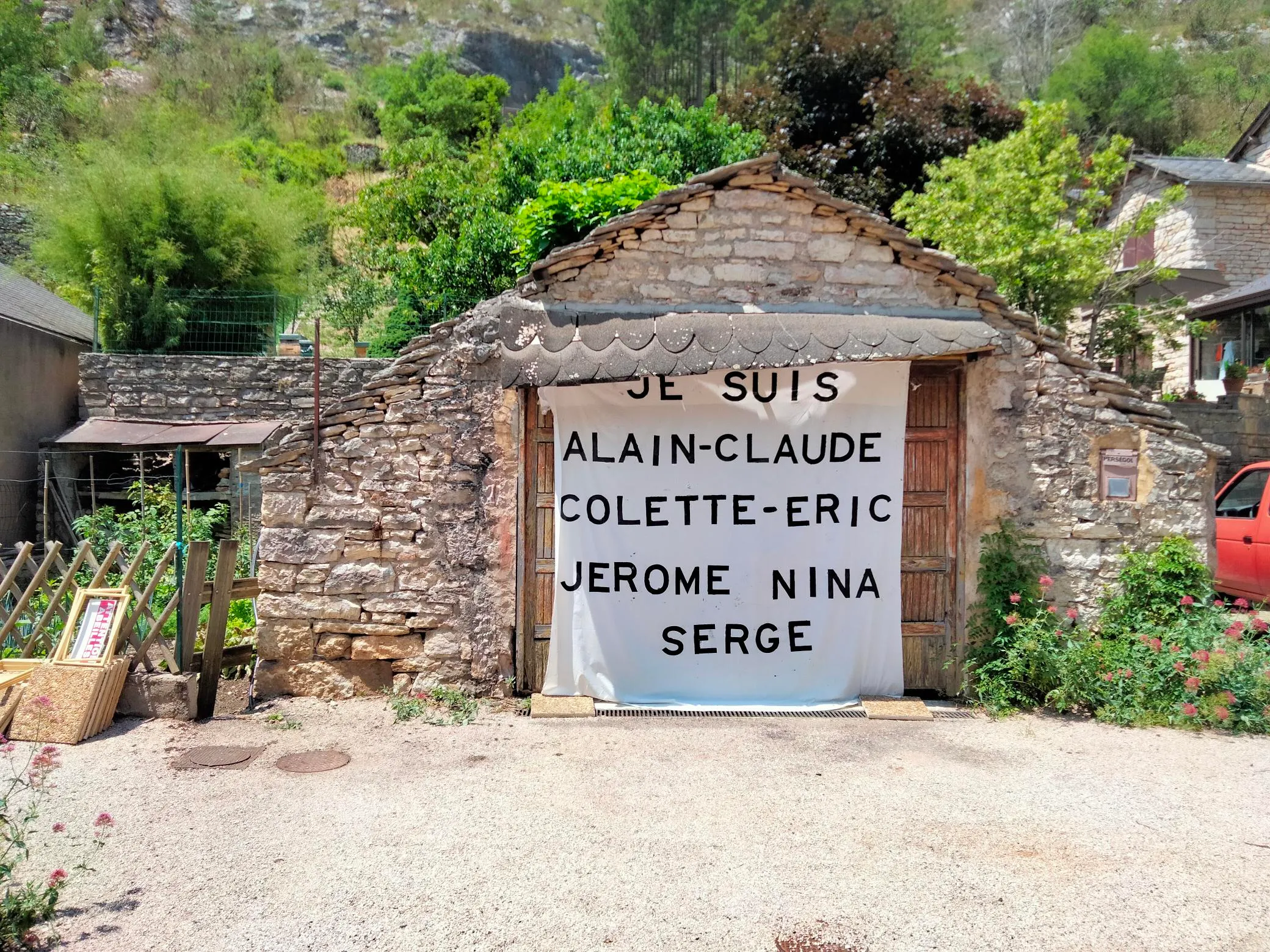 La saison a commencé, les touristes sont là, les terrasses se remplissent, mais des messages tranchent dans cette image de carte postale. Sur de grands draps ou sur les portes des maisons on peut lire « Je suis Alain, Claude, Colette, Eric, Jérôme, Nina, Serge ». Les sept élus sont convoqués devant le tribunal de Mende le 3 juillet prochain pour prise illégale d'intérêt... Le dossier concerne la reconstruction d'un mur contre laquelle les élus ont voté.