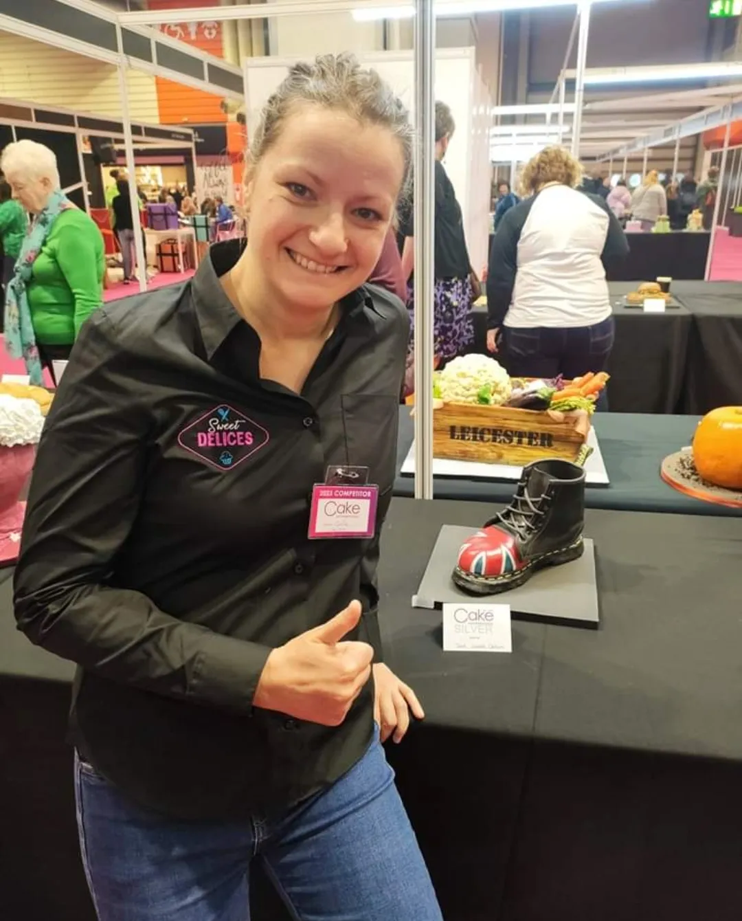 Une DrMartens en trompe-l'oeil qui a valu une médaille d'argent à Carole Bertrand lors des championnats du monde de Cake Design en 2023 à Birmingham, au Royaume-Unis.