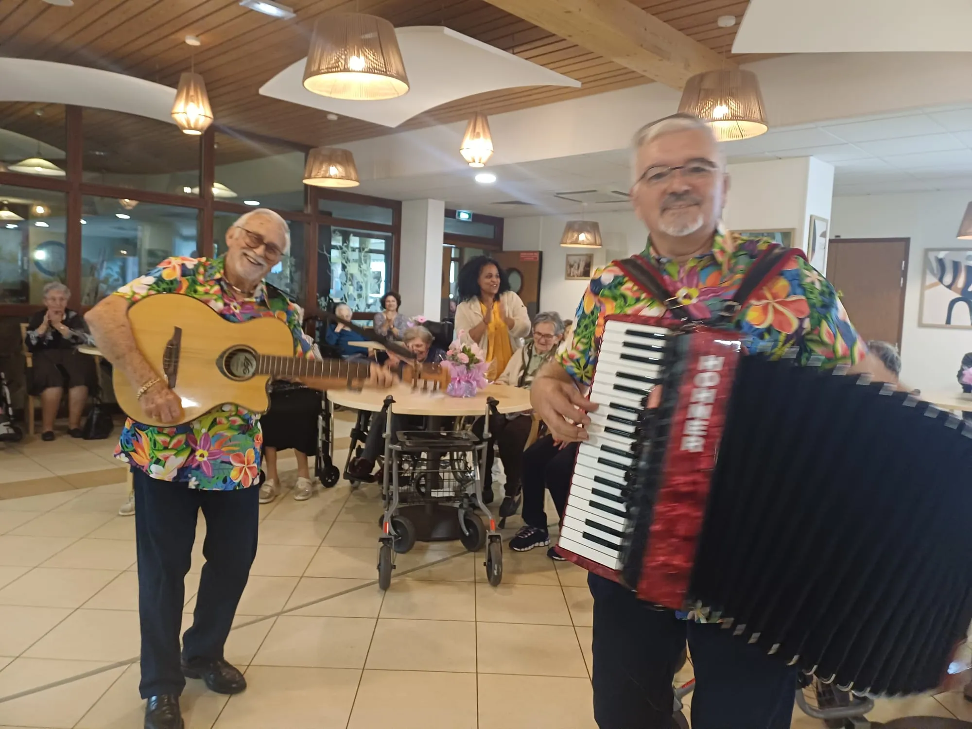 Le duo intervient une fois par mois dans cet ehpad montalbanais pour le plaisir de Maëva une des résidentes née à Tahiti :