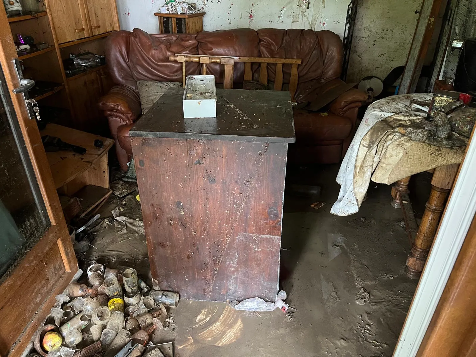 Ce mardi, Marie-Esther et Jean-Luc ont été rejoints par leurs enfants pour tenter de déplacer des meubles et faire un premier nettoyage. Au sol, de la vaisselle côtoie des DVD pleins de boue. Sur la tâpisserie de la salle à manger, un trait noir continu témoigne de la hauteur de l'eau. Commence pour eux le temps des assurances, des indemnisations et d'une éventuelle reconstruction après ce traumatisme.