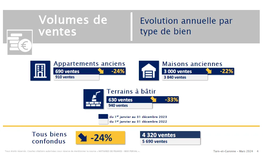 Comme tous les six mois, les notaires de Tarn-et-Garonne dévoilent les chiffres des ventes immobilières. Cette fois, on peut parler vraiment de crise avec des volumes de vente en baisse.