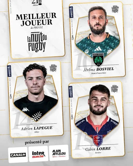 Jérôme Bosviel est nommé dans la catégorie meilleur joueur de ProD2. Montauban dans celui du meilleur staff de ProD2. Pour rappel, le club est monté à l'issue de la saison en Top14.