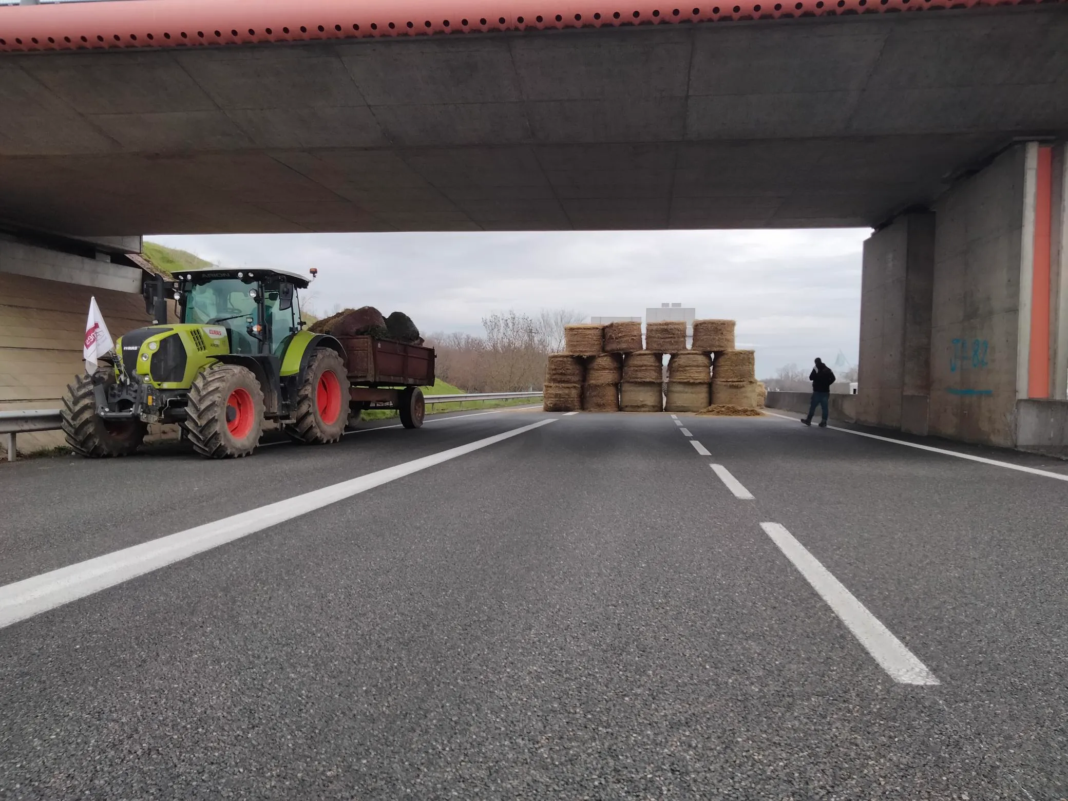 Dernier point de rencontre, Montauban, au rond-point Aussonne. Une soixantaine de tracteurs, une centaine de personnes au total ont convergé vers 11h30, bloquant la zone et la circulation après le péage (sorties 59 et 61) dans les deux sens. L’autoroute A20, symbolique par sa liaison avec Paris, n’a elle-aussi pas été choisie au hasard :
