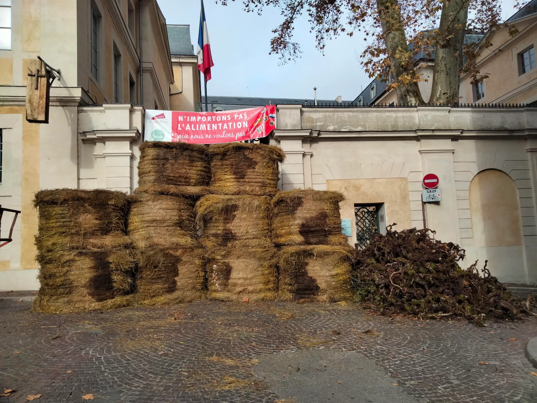 Un peu plus tôt à la mi-journée une trentaine d’agriculteurs du Lot ont allumé un feu sur un rond-point du Montat près de Cahors. Des bottes de foins et des sarments de vignes ont été déversés devant l’entrée de la Préfecture à Cahors à l’appel de la FDSEA et des Jeunes Agriculteurs. Un cercueil en bois a été accroché au lampadaire du bâtiment.