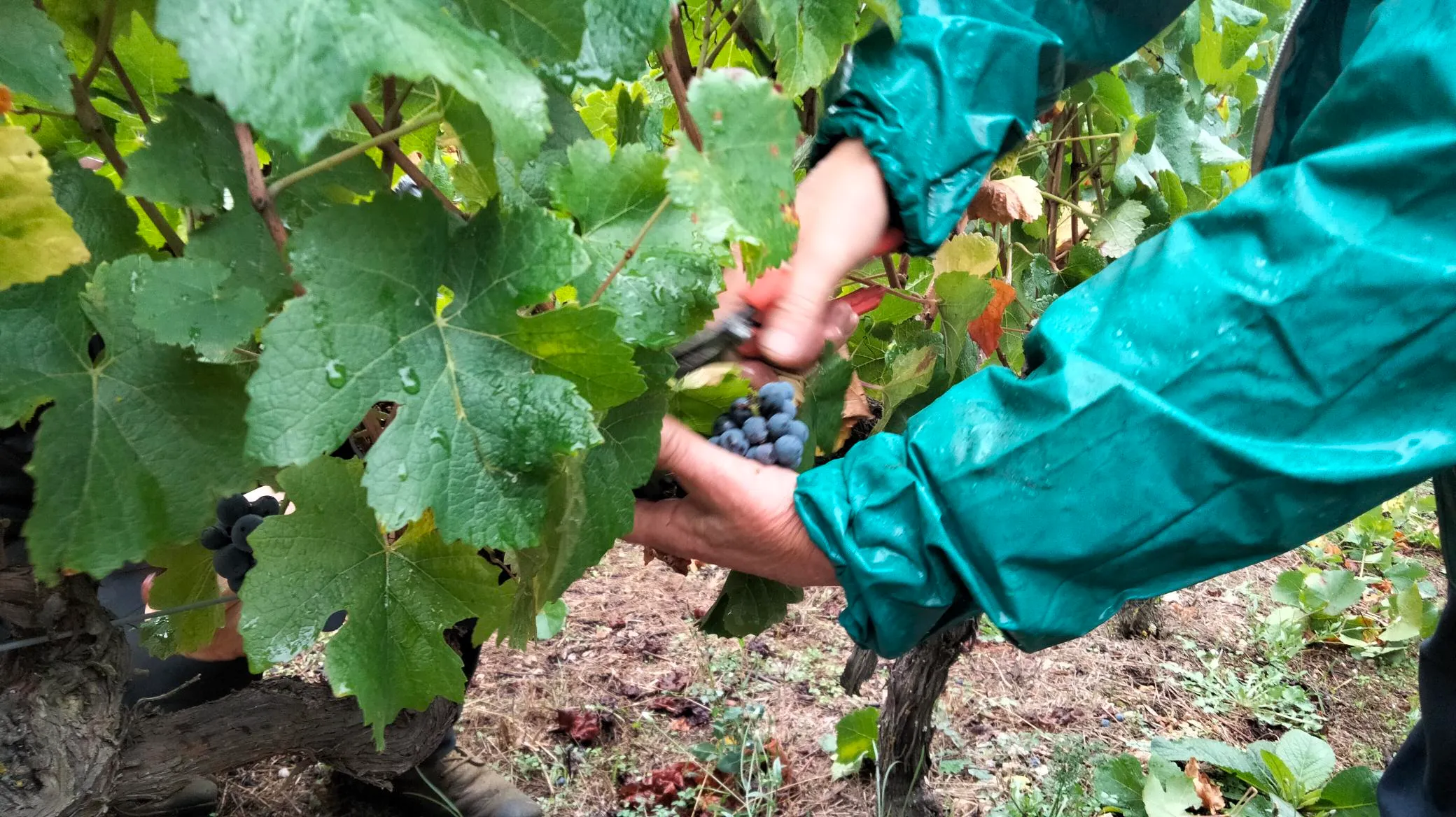 Le raisin n'attend pas. Malgré la pluie, vingt-cinq bénévoles ont chaussé les bottes et retroussé les manches ce mardi 24 septembre pour entamer les vendanges du Domaine de Cabridelles. Premiers coups de sécateurs sur une parcelle au Ceret sur le Pinot Noir.