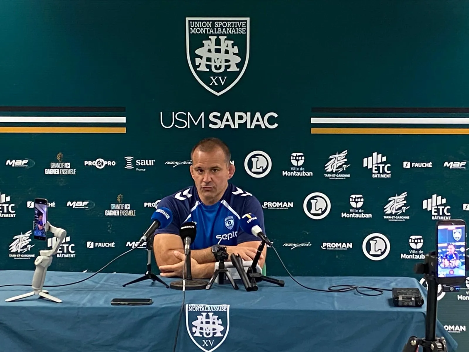 "De l’agacement, beaucoup d’agacement. Sans engagement au rugby on ne peut pas gagner un match, on l’a vu aujourd’hui. […] On ne se respecte pas, au-delà du fait de ne pas respecter l’adversaire, on ne se respecte pas nous-même. On se dit des choses avant, et quand on est sur le terrain on ne fait pas. […] On a eu de la chance de prendre 2 points, beaucoup de chance. […] Montauban a fait un match pour gagner et mérite autre chose que le nul. On leur souhaite bon courage parce que c’est une équipe avec plein de valeurs."