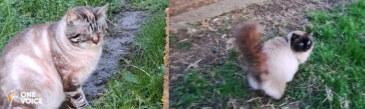 "Ils ont quand même balancé de la fenêtre les dix chats par la fenêtre en roulant dans une campagne où il n'y a personne et de nuit pour qu'on ne les voit pas. Sur les dix chats, seuls quatre ont été retrouvés et deux ont survécu. Pépito et Panda, c'est leur nom, ont repris du poil de la bête. Il vont maintenant être confiés à un refuge en vue d'une adoption."