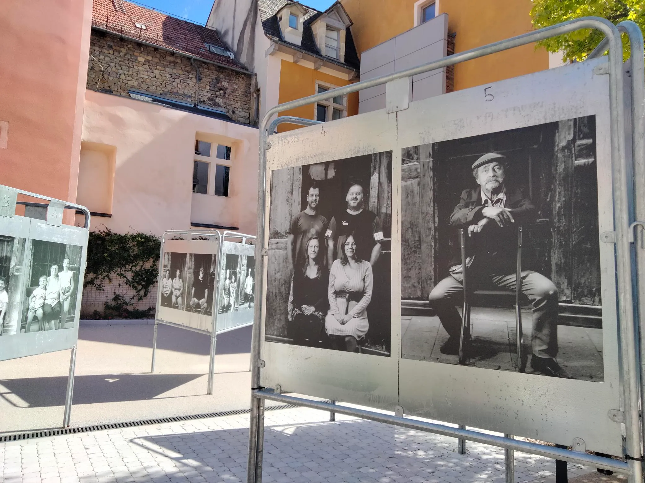 L'exposition Portraits d'ici et d'ailleurs place Daurade à Marvejols
