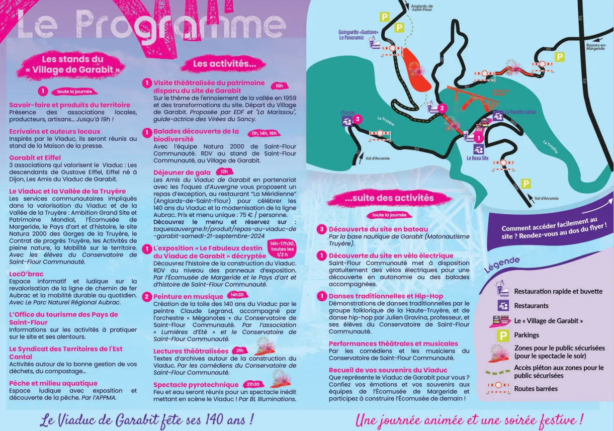 Un anniversaire avec plein de bougies. Le viaduc de Garabit, situé entre les communes de Val d’Arcomie et Ruynes-en-margeride fête ses 140 ans ce week-end. Saint-Flour communauté et ses partenaires ont décidé d’organiser une grande fête samedi 21 septembre. Au programme : grand village de Garabit avec producteurs du territoire, exposition, peinture en musique, danse ou encore déjeuner de gala ( voir programme en fin de cet article ).