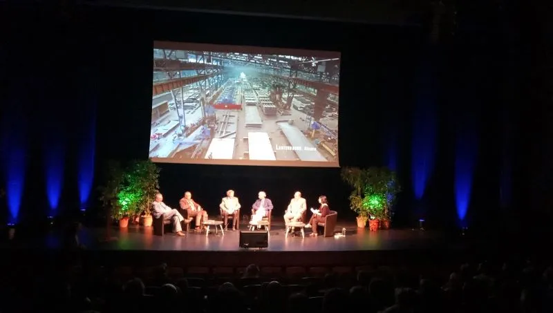 La découverte de ce visuel signé par l'illustrateur néerlandais Fred van Deelen a été le point d'orgue d'une soirée riche en moments forts. La compagnie Eiffage du Viaduc de Millau avait réussi à rassembler au Théâtre de la Maison du Peuple de Millau la majeure partie des acteurs majeurs de la formidable aventure humaine qu'a été la construction du Viaduc de Millau et avec elle, l'achèvement de l'A75 comme lien entre Europe du Nord et Méditerranée. De Christian Leyrit, directeur des routes au ministère de l'Equipement lorsque le principe et le tracé du Viaduc ont été arrêtés, à Michel Virlogeux, l'ingénieur qui a créé le Viaduc, en passant par Marc Bunomo directeur de projet acier pour l'ouvrage, une dizaine de personnalités ont retracé l'histoire de la construction de ce Viaduc.