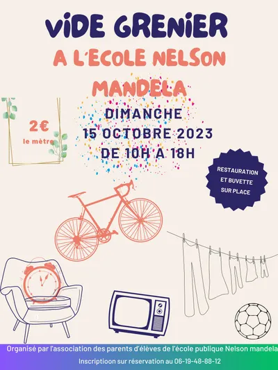 Vide grenier organisé par l'Association des parents d'élèves de l'école publique Nelson Mandela, à Ispagnac (Lozère) Dimanche 15 octobre de 10h à 18h, place de l'école publique. Restauration et buvette sur place. Inscription 06 19 48 88 12 (2€ / le mètre)